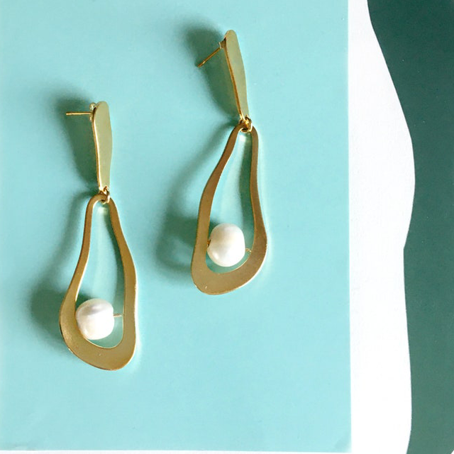 Les boucles Perles d’eau sont de sublimes boucles d’oreille plaquée or avec une perle d’eau naturelle.