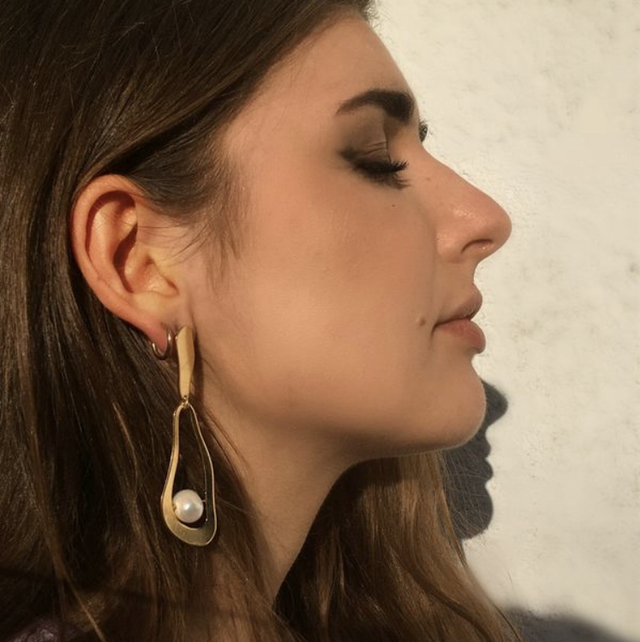 Je les ai imaginées dans la continuité de mon travail sur les coquillages usés par la mer qui sont comme de magnifiques sculptures, ici l’huître trouée par les vagues et qui retrouve sa perle, comme suspendue. Les formes organiques et douces l’éclat de la perle en font vraiment une pièce très féminine mais aussi marquante qui subliment toutes les tenues,