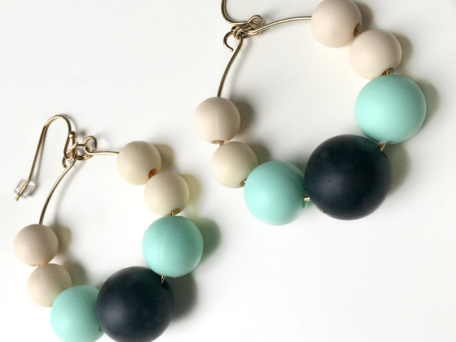 ◆ perles silicone assorties sur support en acier inoxydable plaqué or, attaches acier inoxydable doré